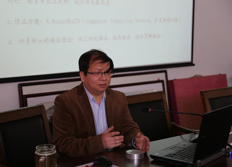 随后,李学宁博士做了“机器翻译发展史及其对翻译教学与研究的启示”的主题讲座。李博士从索绪尔《普通语言学教程》的历史意义与数学之于语言研究的重要性谈起,借鉴语言学、数学、计算机科学甚至哲学的思想与成果来系统寻踪并客观分析了机器翻译的发展阶段、主要人物、重要概念、本质属性、翻译标准、课程开设、市场开发以及对翻译教学与研究的启示。李博士的讲解深入浅出、旁征博引、讲解风趣、举例生动,受到了参与者的一致好评。在老师们和李博士进行了简短的互动后,王金安教授以其开阔的学术视野、深厚的理论功底与精辟的语言文字对李博士的讲解与该场学术沙龙进行了精彩点评。沙龙最后在老师们的自由交流中落幕。