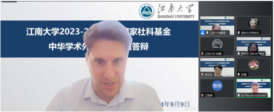 9月9日下午,“江南大学2023-2024年度国家社会科学基金中华学术外译项目”线上开题答辩会顺利开展。本次会议邀请了江南大学社会科学处副处长杨恋恋、南京大学吴桂兵教授、江南大学张鹏教授、江南大学仵欣欣教授、沙迦美国大学(American University of Sharjah)Vincent Greenier副教授等多位专家,共同指导了顾琦一教授团队项目。会议由天美娱乐官网-天美娱乐TIMI CASINO