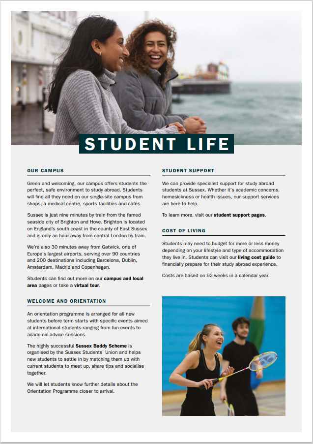 英国萨塞克斯大学2023年秋季交换生项目