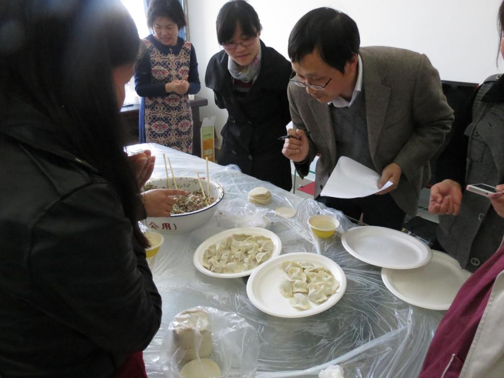 教工之家准时开始了。比赛一开始,各参赛小组就轮番上阵,拿出各自绝活精心包制饺子,不一会一个个形态各异、各具特色的饺子就完成了。比赛过程中,大家齐聚一堂、欢声笑语,轻松自在的畅聊工作、生活,热火朝天的包饺子、吃饺子,气氛和乐融融、温馨快乐。裁判根据比赛规则,从包饺子及吃饺子的速度、饺子成品的外观等方面进行了评分,评出各阶段获奖者,并颁发小奖品。大家一起分享着热气腾腾的饺子,幸福感、满足感油然而生。