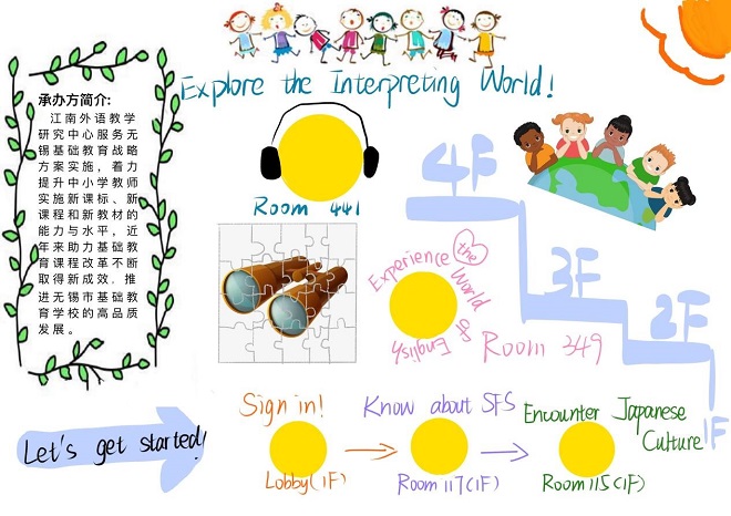 顺利举行。本次活动是校工会联合各学院深入学习贯彻习近平新时代中国特色社会主义思想、持续开展“我为师生办实事”系列活动之一。“英才”江南由江南外语教学研究中心精心设计,通过参观、体验、游戏等不同形式,引导孩子们参加“初识·江大外院”、“遇见·日本文化”、“体验·英语文化”、“探秘·汉/英口译”等四个板块的活动,提升孩子们对外语的学习兴趣、了解外语在交流中的作用,并开拓其国际视野。