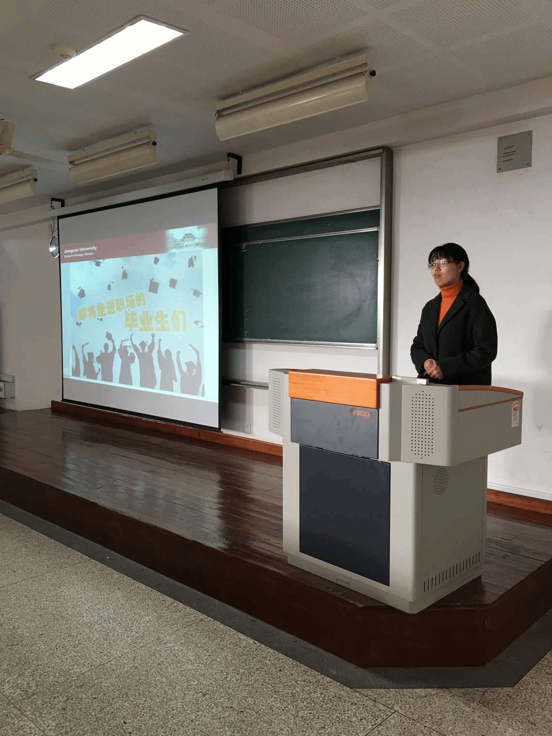 赵莹老师则向同学们解读了天美娱乐官网 近几年毕业生的就业率、就业方向和考研率,强调天美娱乐 毕业生的就业、升学情况良好。赵老师强调同学们要尽快认清就业形势,强化就业意识,希望同学们能主动出击,通过多种渠道积极拓宽就业面。