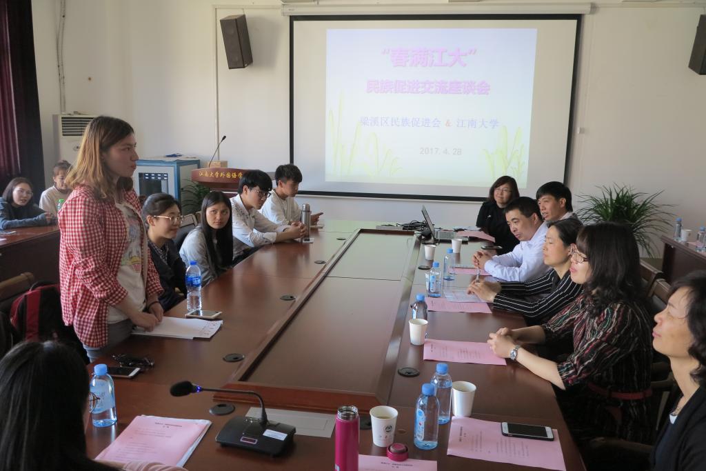 为全面及时了解少数民族学生在天美娱乐 的学习与生活状态,进一步提高天美娱乐 少数民族学生的教育、管理和服务水平,4月28日下午,以“春满江大”为主题的少数民族学生座谈会在学院A349会议室顺利举行。天美娱乐官网 日语系主任崔明姬老师主持了会议。梁溪区民宗局邹鸣萍书记、袁翔副局长、民族促进会黄国斌会长及院党委副书记赵莹还有15名少数民族学生代表参加了本次座谈。
