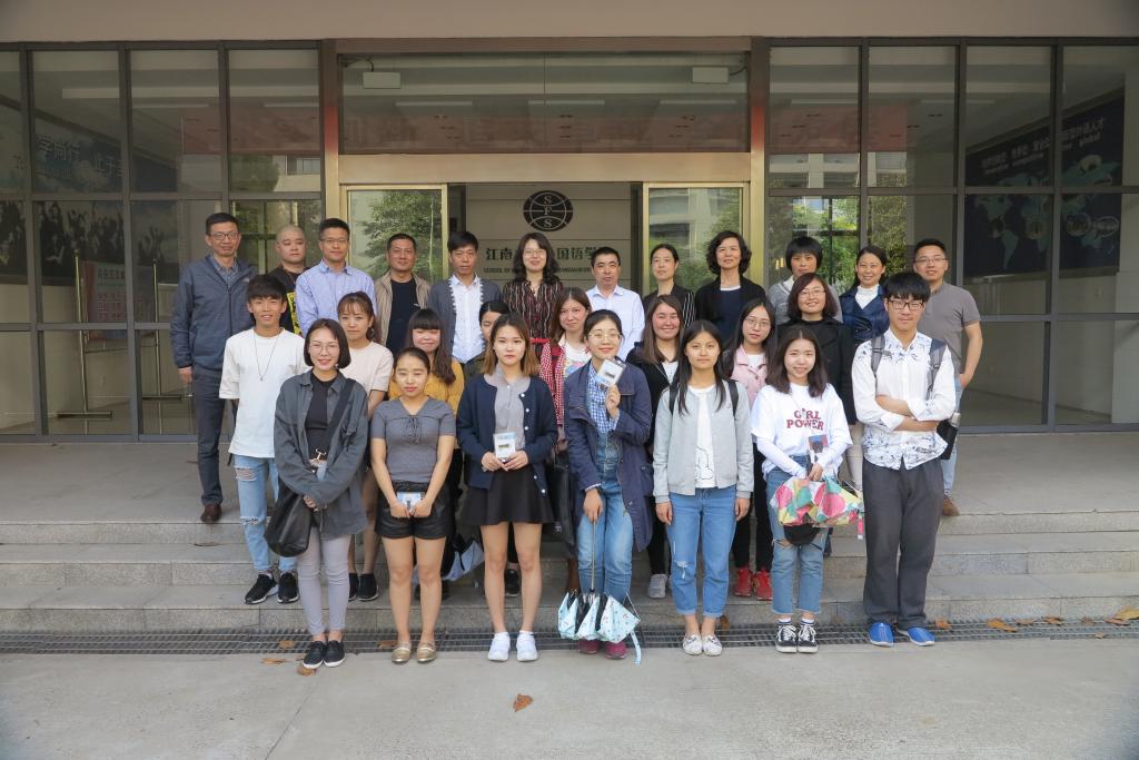 最后,梁溪区民族促进会的领导赠送助学礼品并与学生在学院楼前合影。