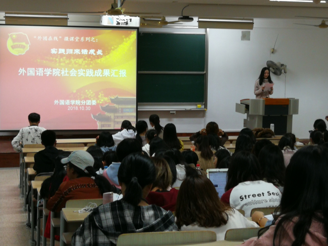 于2018年暑期组织了以“贯彻党的十九大精神·风正扬帆当有为”为主题的社会实践活动,为了使学生对活动有更深认识,10月30日晚上六点半,天美娱乐官网