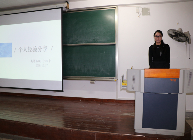 来自英语1602班的左铭瑶主要向大家介绍了跨专业考研的相关信息以及一些名校的夏令营考核内容,“大家要提高自己信息搜集能力,增加阅读、写作、听力及口语等方面的积累。认定目标、踏实去做,让每天的自己都能有所收获、有所提高。”英语1705的宁梓含同学从专业学习、社会实践、科研创新以及对未来的规划四个方面向同学们介绍了自己的大学生活,她鼓励同学们跨出自己的舒适圈,多参加各类活动及竞赛,从而使自己的能力得到更好的锻炼,成为更优秀的自己。最后一位是英语1605班的邵琴同学,主要分享了保研的相关事宜。她表示在保研的过程中,绩点排名、专业竞赛以及科研项目都非常重要,有保研意向的同学们应该从这三个方面来不断优化自己,提高自己的学习成绩;经验分享后,现场的同学也就自己感兴趣的问题与三位分享学生进行了交流。会后同学表示感触很深,在今后的大学学习生活中要明确自己的奋斗目标,做好自己对未来的规划,从而为之不懈地努力奋斗,充实自己的大学生活。