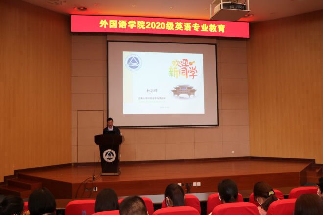 在英语专业教育会上,英语专业系主任孙志祥老师围绕“英语专业基本情况”、“英语专业定位、沿革、优势”以及“四年大学生涯规划”三个方面进行介绍。孙老师说:从高中到大学,转变了身份,更要调整学习方法来适应大学的学习,大家要抓住大学的时间提升自己的专业能力。在日语专业教育大会上,日语专业系主任崔明姬老师从“学分要求”、“日语保研”、“留学交流项目”、“专业竞赛”几个方面为新生进行介绍和讲解。管纪龙老师则引导新生及时调整学习方法和学习状态,做好未来学习规划。通过专业教育大会,让2020级同学们深入的了解自己的专业情况,使新生对学院的发展前景、核心特色和学院的人才培养模式有了进一步了解。