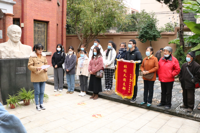 11月28日上午9点30,英语1805张闻天特称团支部与机关退休第四党支部、社桥退休党支部六名党员代表来到无锡市梁溪区汤巷45号的张闻天故居进行参观学习。