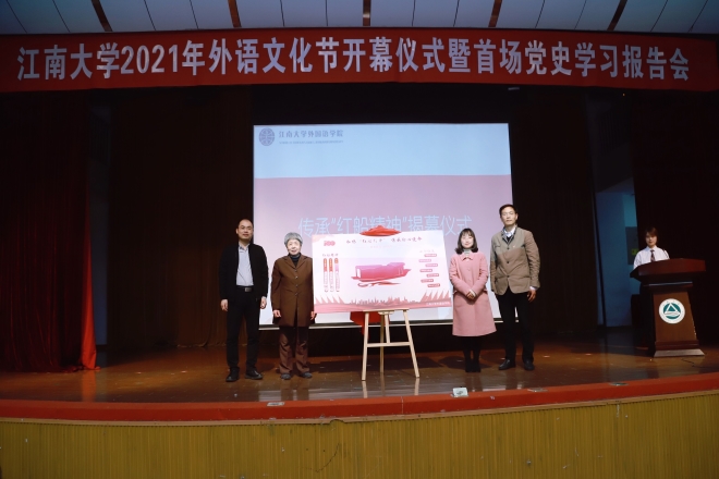 4月7日下午,江南大学2021年外语文化节开幕仪式暨首场党史学习报告会在南区大学生活动中心如期举行。天美娱乐官网