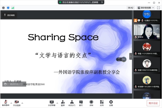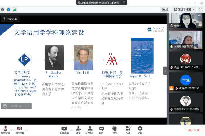 张俊萍副教授线上参与主讲“文学与语言学的交点”主题圆桌会,会议吸引近百名同学参与线上交流。