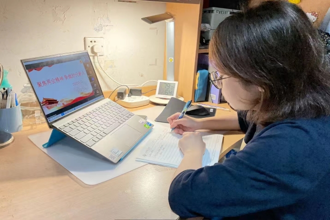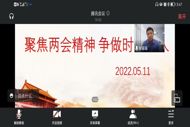 青马工程训练营与入党积极分子培训班举办线上理论学习讲座,张瑶瑶老师为大家带来题为“践行两会精神,争做时代新人”的讲座,学生会组织部部长熊雪冰主持会议。