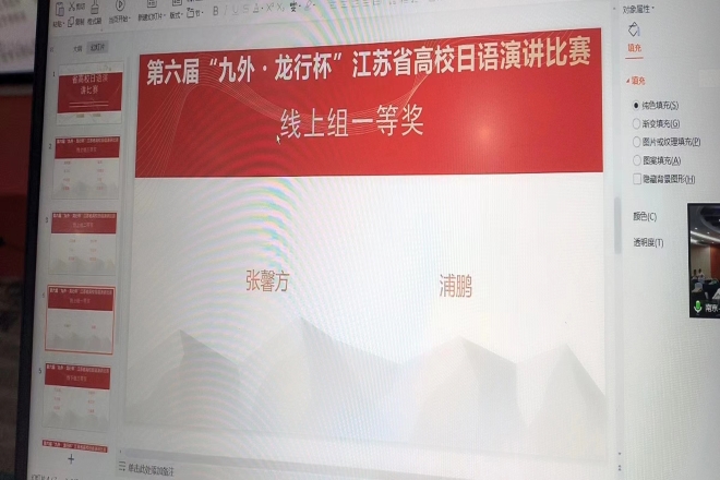 2022年12月10日第六届“九外・龙行杯”江苏省高校日语演讲比赛在南京林业大学举行。此次大赛由江苏高校外语教学研究会日语分会主办、南京林业大学天美娱乐官网