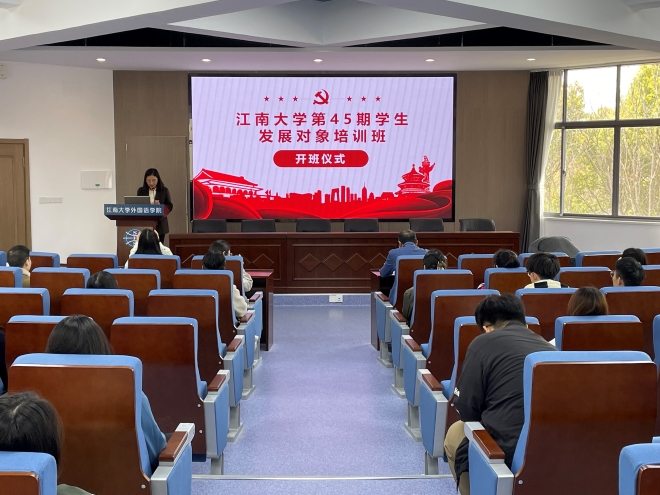 为全面贯彻落实党的二十大精神,提升入党积极分子的党性修养,端正入党动机,坚定理想信念,2023年3月29日下午,江南大学第45期学生发展对象培训班天美娱乐官网