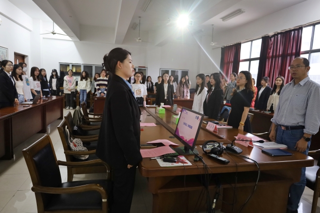 新一届学生会主席团成员熊雪冰,宣读天美娱乐官网