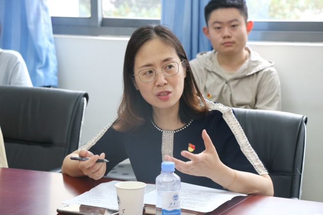 周雪晖对本次主题党日活动进行点评。她认为活动精彩纷呈,有以下特点:第一,策划精良有序,紧扣时政学习。第二,专业特色鲜明,活动形式多元。第三,自身联系实践,互动创新思想。