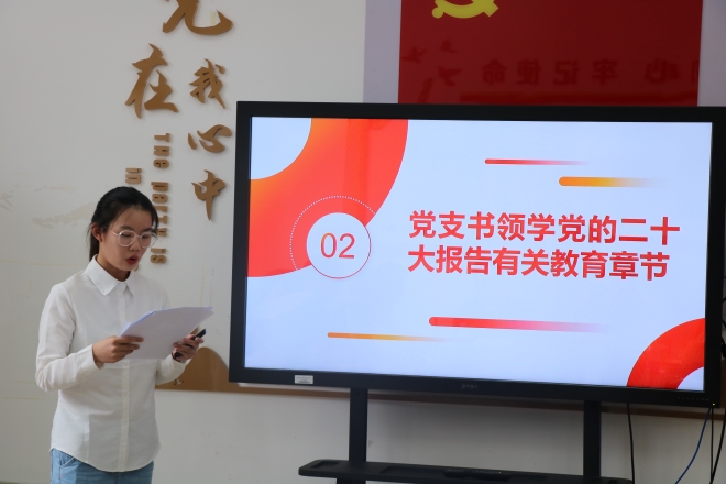 首先,同学们观看了中国共产党国际形象宣传片《CPC》(日语版),重温党走过的路、感受党始终如一为人民服务的宗旨。然后,由党支书鲁颖洁领学党的二十大报告有关教育的章节,明确党培养中国新青年的决心,鼓励党员们敢担当、肯奋斗,让青春绽放在全面建设社会主义现代化的进程中。