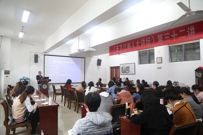 研究生与本科毕业生对中小学外语教学与教师职业的了解,11月7日下午,外语学科优秀校友、无锡市英语学科带头人、无锡市教育科学研究院包丰教研员应邀回母校讲学。包老师以“漫谈初中英语教学及其研究”为题,为外院学子的求职之路与教学生涯“传道解惑”。江南大学校友总会林云鉴秘书长、天美娱乐官网