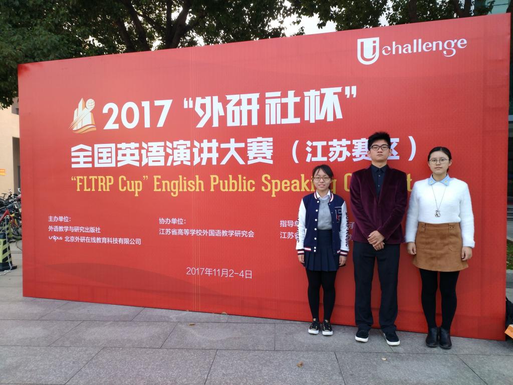 15级项梦琦以及17级荀子杰三位,指导教师为严敏芬教授和钱薇薇老师,龚晓斌院长受邀担任了决赛阶段的评委工作。2017年定题演讲题目“China, A Global View”,选题理念紧跟国家发展,格局视野更创新高,启发选手思考“中国的世界观”与“世界的中国观”,为选手提供了广泛的思考与展示的空间。即兴演讲话题多样,现场问答精彩不断,考察选手的临场应变能力与平日学习积累。最终,我校沈思佳同学获得三等奖,项梦琦和荀子杰获得优胜奖。