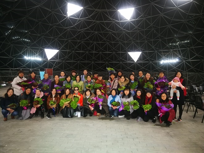 经过一小时车程到达农庄。老师们首先聆听了农庄主人许利女士关于新型生态农业的介绍 ,了解了生态农庄的创办过程以及产品特色,然后大家进入育苗棚等不同产品生长阶段的大棚,观察无土有机立体栽培蔬菜的生长环境和长势,感受植物的蓬勃生机。大家还亲自动手采摘生菜,包扎一束充满原生气息的鲜花—生菜花,具有生才或生财的美好喻意,来庆贺自己的节目。活动中大家相互留影,记录了一张张笑脸与一棵棵生命力爆棚的植株。