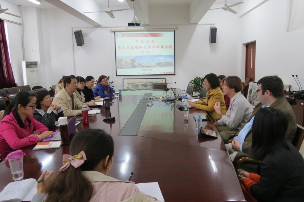1111日,弗吉尼亚联邦大学许耀英教授团队一行五人前来天美娱乐 交流访问。龚晓斌院长热情地接待了来宾并发言致辞,部分骨干教师参加了座谈。许教授的团队成员分别介绍了各自感兴趣的研究问题。双方就科研项目合作、相互访学交流、远程博士生培养计划等进行了热烈而坦诚的讨论。教师们认为与国外学术团队合作的探索与尝试有利于双方开拓思路,发现研究热点,共享优质资源,推动教师职业发展。