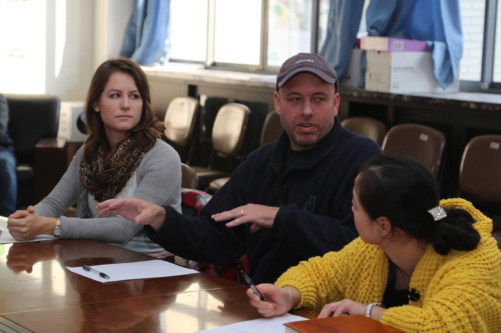 接着与会的五位外籍教师分别介绍了自己所教授的科目和平时课堂采取的针对不同课程的教学方法、教学感悟。这种轮流介绍为定期交流的外教们提供了一个相互学习、相互启发的良机,对他们日后的教学工作大有裨益。在这一过程中,有外教对目前采用的英语专业口语教材提出了中肯的意见和建议,这也为将来共同编写天美娱乐