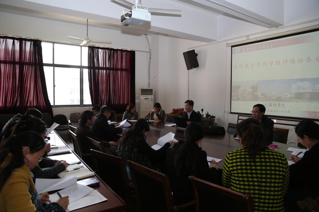 在外语楼A349会议室召开了本科教学工作审核评估任务分解专题会,龚晓斌院长、教学委员会成员、系部正副主任、人事秘书、科研秘书、分团委书记、实验中心主任、教务秘书等相关人员参加了此次会议。会议由李健雪副院长主持。