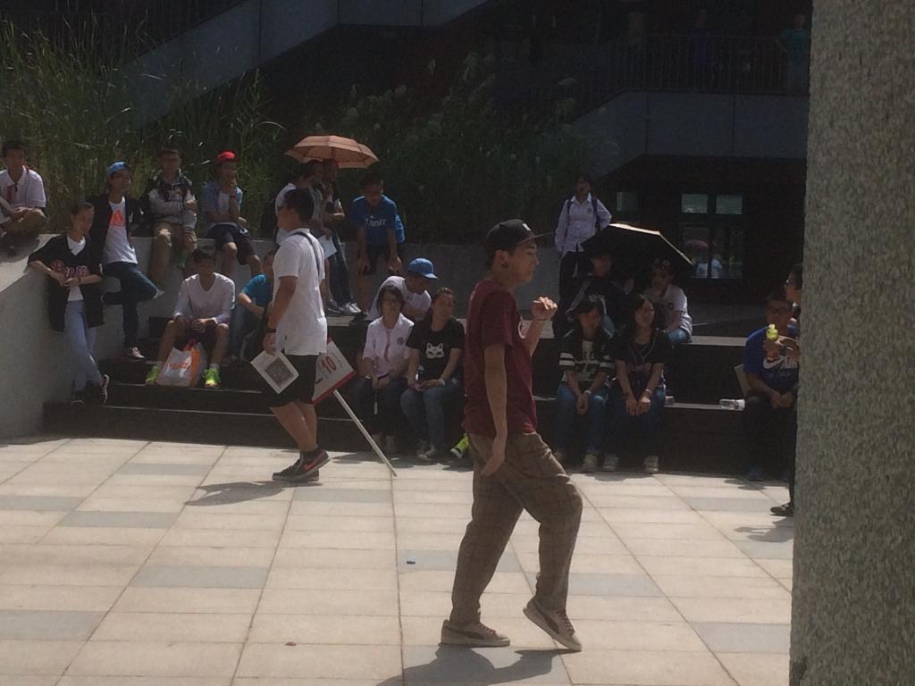 漫步在校园内,随处可见身着奇装异服的coser,像从漫画书中偷溜出来的人物。他们自信从容地从我们身旁经过,丝毫不在意我们讶异的眼神。当我们要求合照时,他们也大大方方地接受,不会有半点羞涩局促。