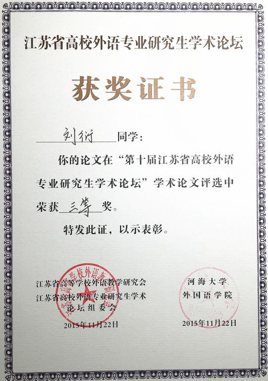 2015年11月20至22日,由江苏省高等学校外语教学研究会和江苏省高校外语专业研究生学术论坛组委会主办、河海大学天美娱乐官网