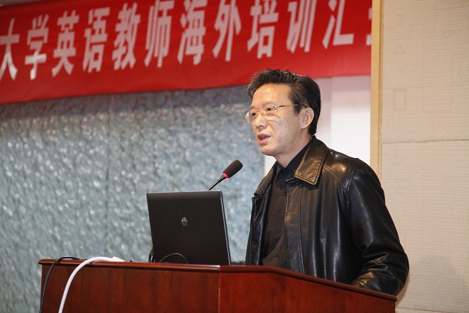 在大外教学改革方面做出的努力和获得的成绩,并希望大学英语教师能结合本次海外培训的经历,更新教学理念,不断学习,勇于实践,挑战自我,加强OBE(基于学习产出的教学模式)研究,致力于推动我校学生外语能力的全面提升。