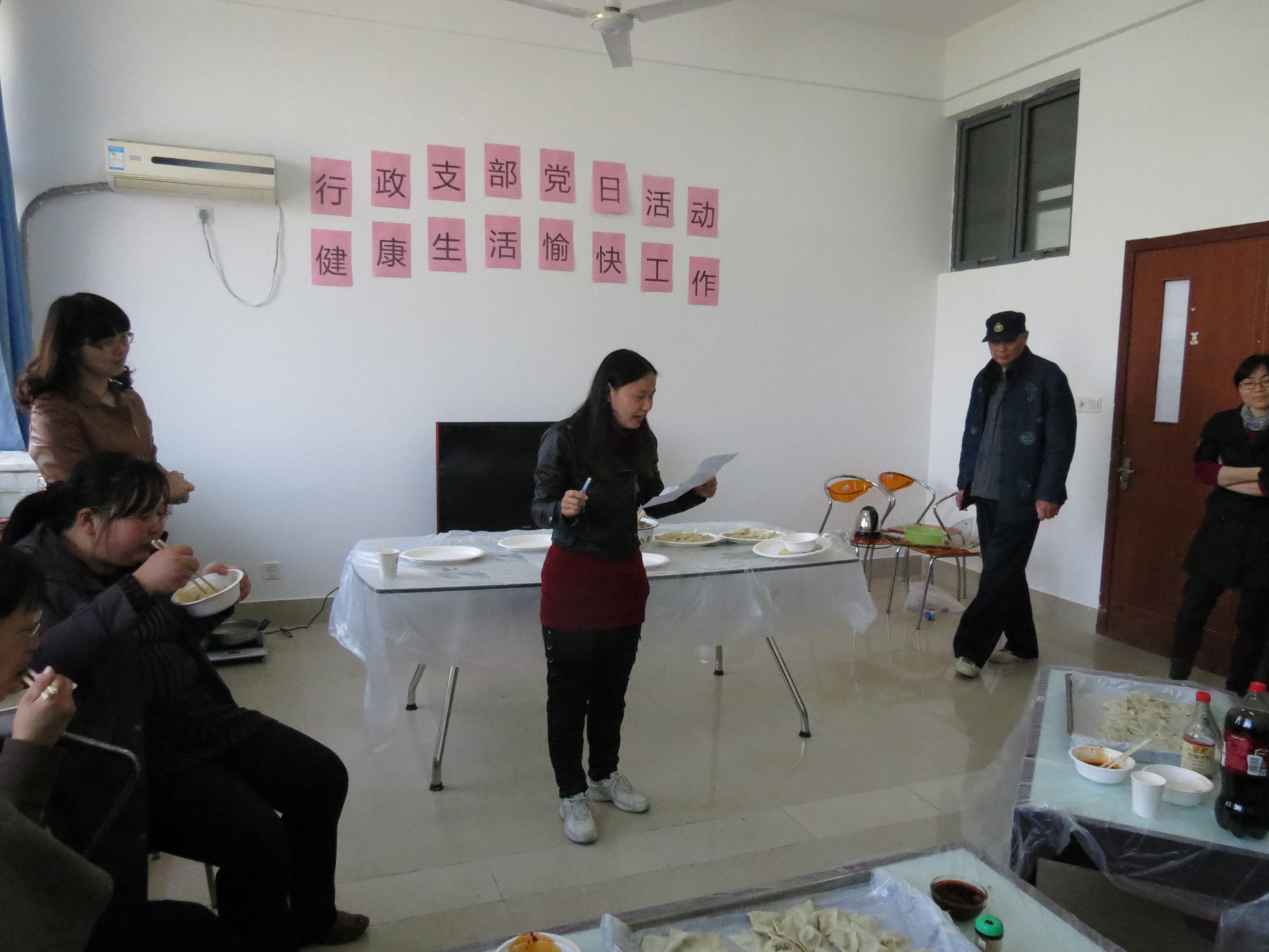 教工行政党支部于4月4日中午开展了主题为“健康生活,愉快工作”的系列党日活动,支部全体党员均参加了本次活动,学院党委委员龚晓斌老师、张晓虹老师、施惠平老师也应邀参加。活动现场气氛十分热烈,不时传来阵阵欢笑和掌声,许多非党员教职工也前来现场观摩,并参与活动。本次活动分为两场,第一场为包饺子及吃饺子大赛,第二场为乒乓、羽毛球友谊赛。