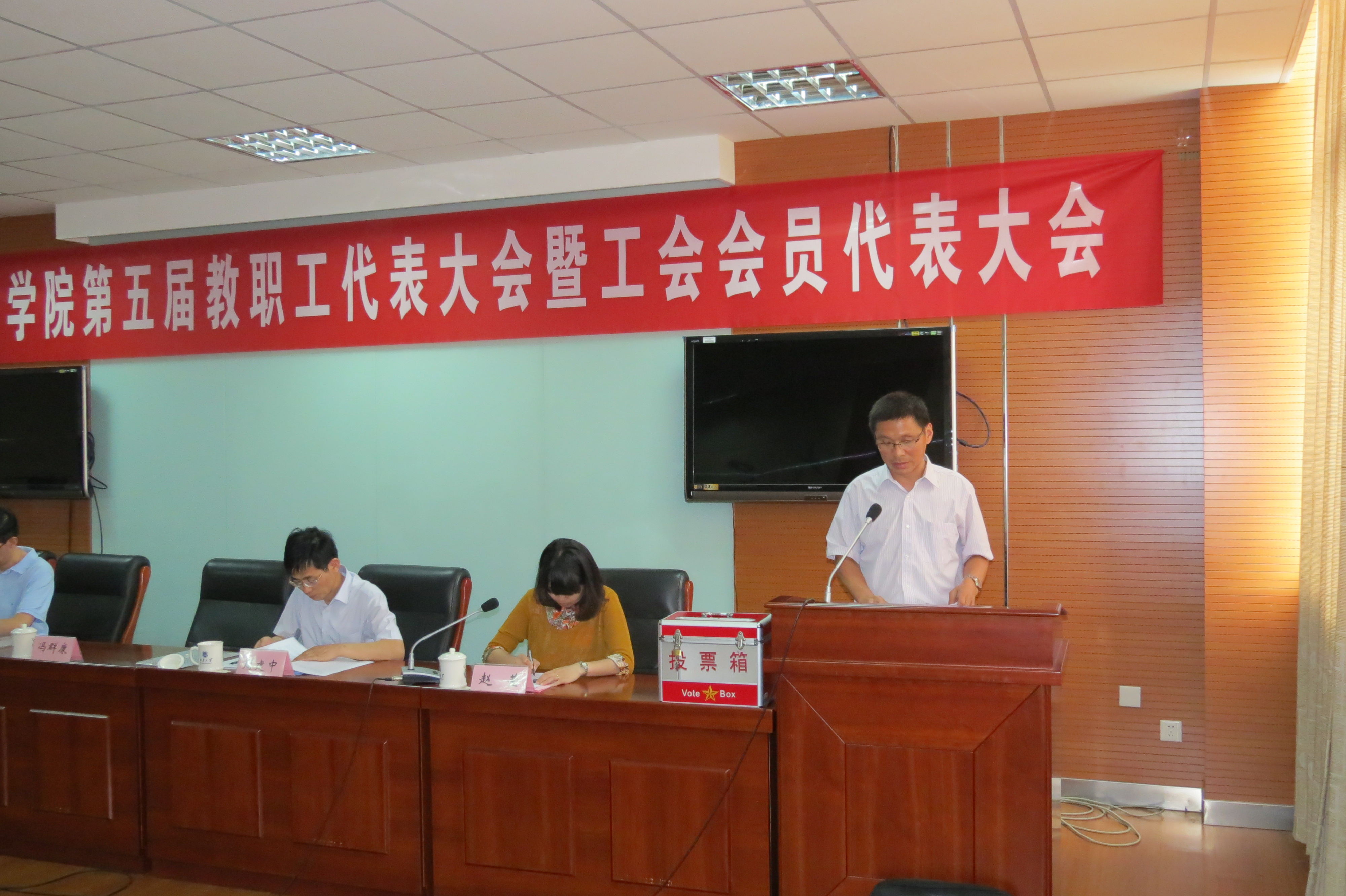 的可持续发展努力奋斗》的2011-2013行政工作报告,院分工会主席管纪龙代表学院第四届分工会委员会作了2011-2013分工会工作报告,随后52名教代会代表投票选举产生学院新一届分工会委员会委员和教代会执委会委员。