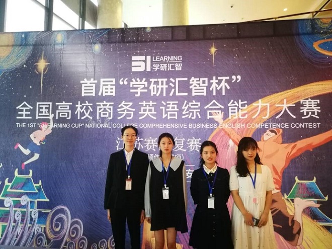 2019级四位英语专业本科生方漩、徐昕、胡艺严、杭帆在指导老师谢晴、朱敏华的带领下参加了本次复赛。