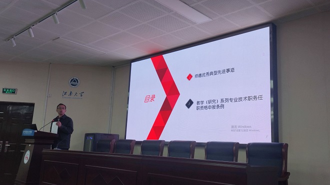 最后,为回应教师关切,方文开还详细解读了新发布的《江南大学教学(研究)系列专业技术职务任职资格申报条例》。