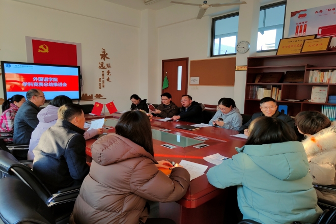在A331会议室召开学科竞赛工作总结交流会。院长方文开,党委副书记刘伯贤,副院长朱义华,英语系主任孙志祥,日语系主任崔明姬以及学科竞赛指导委员会成员参加会议。