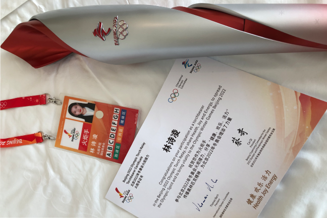 鉴于林诗凌在青年领袖项目中表现出色,国际奥委会决定推荐她作为代表,担任2022年北京冬奥会火炬手,呼吁世界各国青年人投身体育事业。2022年2月4日,林诗凌作为颐和园第16棒火炬手,顺利完成与第17棒中国女排队员朱婷的交接。采访中,林诗凌描述了奥运圣火从希腊一路走来的历程,熊熊燃烧的圣火寓意着奥林匹克精神永不熄灭。对她而言,在祖国大地上传递奥运火炬意义非凡,是一件值得骄傲终身的事。