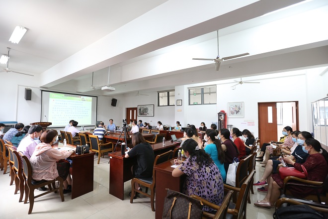 大会议室做了题为“数字经济视域下大学英语课程建设的思考”的学术报告。讲座由方文开院长主持,三十多位从事大学英语教学的老师们现场聆听了讲座,因疫情影响,其他数十位老师通过钉钉群视频听讲座。