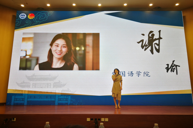 决赛现场,谢瑜老师围绕自己教书育人的教学经历,通过学生视角,从教学能力、教学成果和师德师风等方面进行展示。现场演讲介绍中,谢瑜老师展现了外院教师“以生为本”的教育理念、认真负责的工作态度以及扎实的专业素养与最终,经过专业评审和大众投票,天美娱乐官网