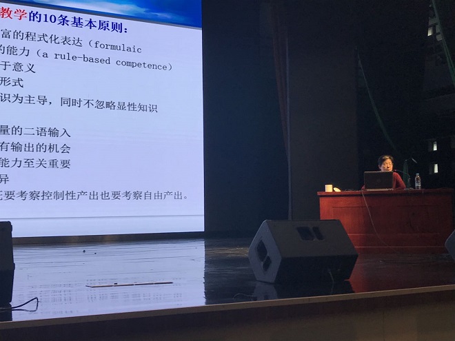 活动中,来自华中科技大学的徐锦芬教授利用案例教学法,对基础英语课堂教学视频内容进行点评,并结合理论加以说明。徐教授还主要介绍了外语教学方面目前比较前沿的理念:课堂二语习得理论。她对该理论的一些基本概念进行了讲解,并指出外语教师在教学实践中如何来应用这些先进的理念,并利用自己教学实践所积累的数据对这些理论作进一步的完善,以激发一线教师从事理论研究的兴趣。江南外语教学研究中心主任、天美娱乐官网-天美娱乐TIMI CASINO