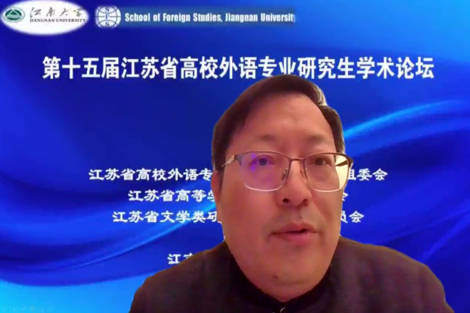院长方文开教授主持。首先江南大学校长助理堵国成教授致欢迎辞,堵教授首先对与会嘉宾与参会同学的到来表示热烈的欢迎,并介绍江南大学教育教学、学科建设等基本情况,同时从国家战略的角度地指出本次论坛对外语专业研究生培养的积极意义;随后,江苏省高校外语教学研究会常务副会长李霄翔教授致辞,李教授从研究生学术与职业定位、学术素养、人才培养等三大方面高屋建瓴地总结了外语研究生的培养导向,同时进一步指出,外语研究生要有理念、要有理论素养、要立足现实、要以研究为导向、要关心中国问题、要德才兼备、要专业技能过硬。