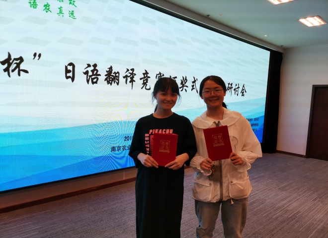 日语系穆澜同学、戚维欣同学分别获得中译日组二等奖和三等奖,崔明姬老师代表天美娱乐