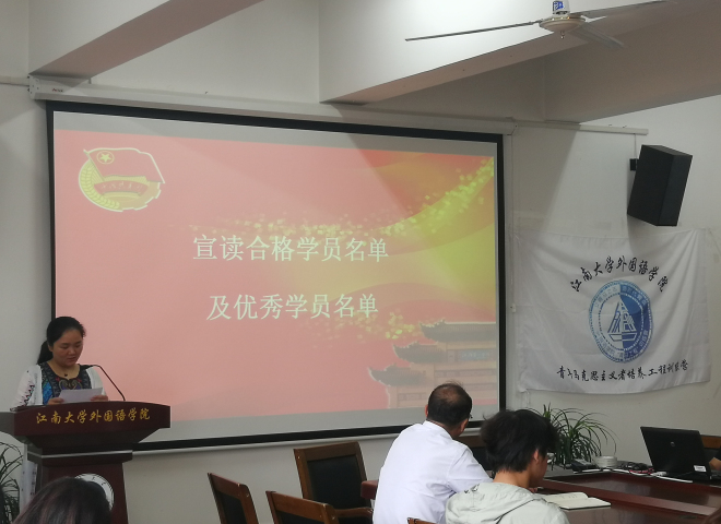 院分团委书记杨艳老师宣读合格学员及优秀学员名单