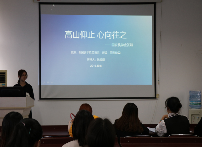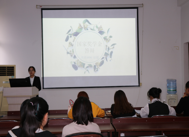 本次本科生国家奖学金评选经系统申报、学院初评,共有17名候选人进入现场评审环节。答辩会现场分为自我陈述和评委提问两个环节。在自我陈述环节,各候选人通过图文并茂的PPT展示,围绕专业学习、综合素质测评以及爱好特长等方面陈述着各自的参评理由。经过评委现场打分,加上学年学业成绩、综合素质测评成绩以及现场表现的综合评定后,最终确定16级英语专业左铭瑶、17级日语专业倪心喆等8名同学获得2018—2019学年本科生国家奖学金荣誉。国奖评选答辩会不仅是学生一次展示的机会,更是一次难得的学习机会。