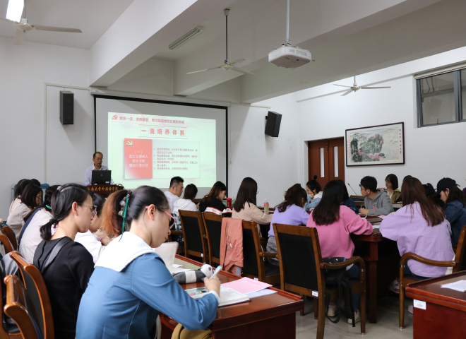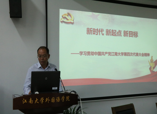 党支部开展了“新时代、新起点、新目标——学习贯彻中国共产党江南大学第四次代表大会精神”专题党课,学院党委副书记刘伯贤老师为主讲人,分学院分团委书记杨艳老师、学院分团委副书记张圆老师,以及天美娱乐官网