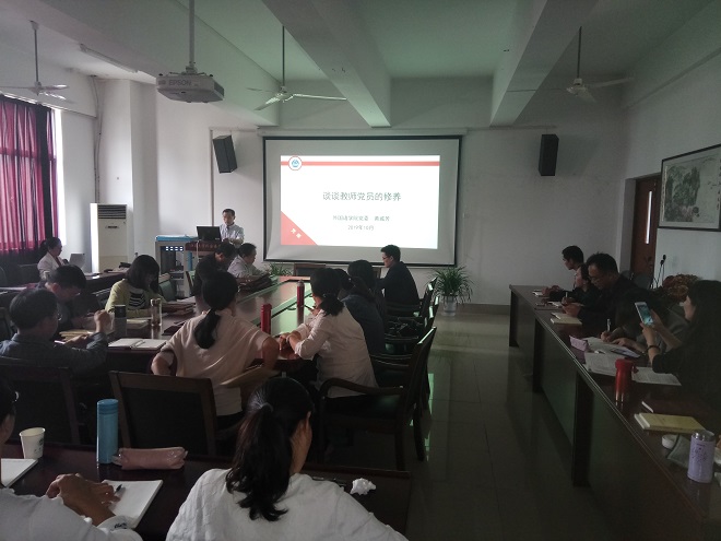 副院长朱义华同志以“‘不忘初心、牢记使命’,争做新时代合格党员”为题,讲述了“我们党的初心与使命是什么”,“怎样才能做到‘不忘初心、牢记使命’”。通过学习,党员教师明确了“不忘初心、牢记使命”主题教育的意义、目标与要求,纷纷表示要努力学习贯彻习近平新时代中国特色社会主义思想,坚定理想信念,寻找差距,狠抓落实,争做新时代的合格党员。