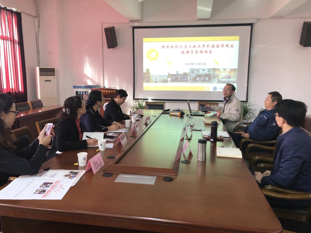 的接待表示感谢,介绍了大连工业大学外语学院的基本情况,并希望同为理工科大学的外语学院,能在如何完善“外语+”专业课程设置、学科发展等方面借鉴天美娱乐