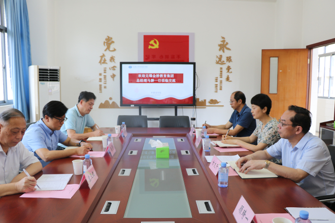 6月8日上午,无锡金桥教育集团总经理马翀,集团综合办主任马松杉,集团教研院院长袁天钰等一行来天美娱乐官网