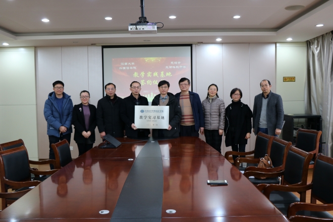 与无锡市太湖格致中学共建教学实习基地暨授牌仪式在无锡市太湖格致中学三楼会议室举行。学院院长方文开、党委副书记刘伯贤、副院长顾琦一、副院长谢竞贤及学院社会服务部程方老师、无锡市太湖格致中学校长惠晓虹、副校长蒋茂元、副校长余志明、副校长王万萌参加了签约仪式。