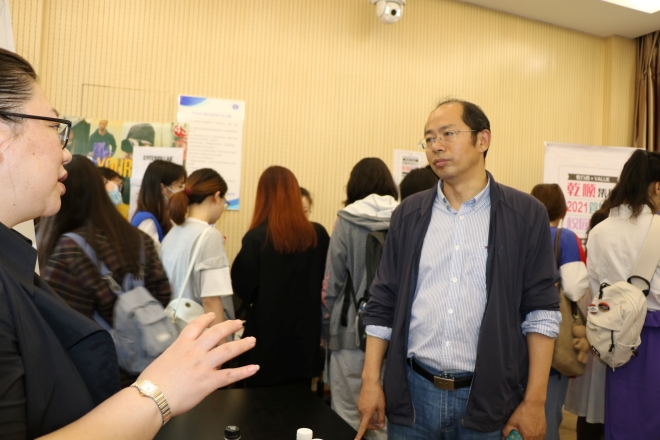 本次招聘会采取线下招聘的形式,开设一楼和四楼共4间小会场。学院经过两周的筹备部署工作,共筛选出招聘专业相关的52家优质企业参会,涉及国有、民营和港澳台及外资企业,以及教育、互联网、商务服务、文化艺术、信息技术服务、制造业和纺织业等多个行业,提供就业和实习岗位上百个。在招聘会当天,学生党员志愿者井然有序的布置会场,组织签到,维持秩序,热心服务,充分体现了外院人良好的精神风貌。