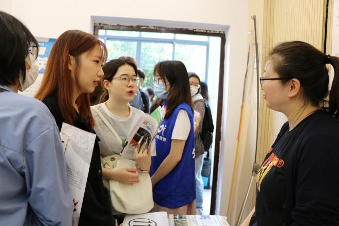 13:30,招聘会正式开始,江苏国泰汉帛实业发展有限公司、卡特彼勒(中国)有限公司、星火教育、新东方教育、日语孑孓教育、南京猿习信息科技、鹰普(中国)有限公司等公司的展位前纷纷热闹起来,同学们积极向招聘单位咨询岗位信息并投递个人简历。学院领导和毕业年级辅导员积极与企业交流沟通,深化联系。江南大学的外语教学至今为止,培养了大批出色的综合型人才,就业覆盖教育、外事、金融、国际贸易等各个领域。