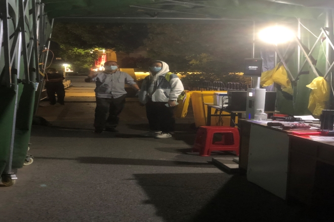 下午6点,志愿者群里发出急诊消息“有一名急诊同学需要转院”,“收到,马上来”,刘伯贤老师发出消息后,王红军老师从家里快速出发,前往学校东门接应。“我在东大门了”。因为是急诊,需要办理手续后才能出校。刘老师陪同学生办理完手续后,王老师在门口将学生接送到医院就诊。晚上10.17分,王老师在群里反馈“还有15分钟左右到达东门”,“好的,已在东门”。学生达到东门,叮嘱过后王老师带学生进行信息登记,刘老师将学生接到长广溪。“学生已经在长广溪住下了,大家放心”。志愿群里是大家对学生需求的快速响应,从“收到”到“放心”,老师志愿者通过持续接力,形成关爱守护“闭环”。